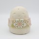 这是一个地藏陶瓷娃娃,有着可爱的粉红脸颊,带给您只有手工制作才能实现的温暖。