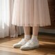复古拼接的德训鞋型,Q弹专利底台厚度舒适好走,搭配刚刚好的浪漫细节。