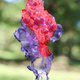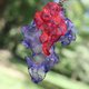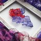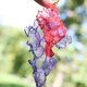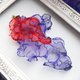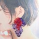 Art pierced earrings that express complex and beautiful colors by layering bright and transparent red and purple organdy fabrics.