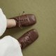 此款牛皮质地柔软、轻盈、上脚柔软服帖毫无束缚感,成品慵懒恣意,松弛且时髦。
