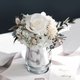使用6cm的大玫瑰日本大地农场有机永生不凋玫瑰/不凋绣球,采用食用级染料。白玫瑰+复古渐层米白蓝绿色系绣球~搭配不凋花叶材及圣诞冬季常见的松果/棉花,好好照顾可以观赏3年以上喔~若需做成捧花请来信定制报价喔~
