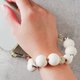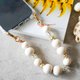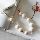 原来的干燥花珠里装满了白色的大戟花瓣。透明的珠子上有细长的白色花瓣和到处都是绿叶,给人一种自然的感觉,与木珠的材质很好地融合在一起。