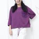 异材质口袋下摆抽绳七分袖上衣 紫色