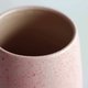 This wheel-thrown large 'Speckled' vase is finished on the exterior with a matte Sakura Pink glaze that runs midway down, leaving the feel of the actual ceramic body along the bottom section. The visual texture created with juicy red speckles, coupled with the high gloss interior, completes the trio of textures - raw, matte, and gloss.