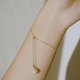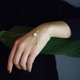 用14K合金链搭配天然淡水珍珠,制成妳钟情的手链。特别利用内含硅胶的金色圆球作为基点,让珍珠像蝴蝶结般垂坠在手腕,随意调整长度,免去穿脱的不便,任何手围都能轻松配戴 。