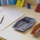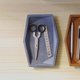 它是将牛皮(光面革)和猪绒面革(拉绒革)黏合在一起,用水润湿,用公母模从上、下压压而成。传统的皮革挤压器使用木制模具,形状简单,但使用 3D 切割树脂模具从上方和下方插入可以创建复杂的形状。利用这项技术,我们开发了一种独特的皮革托盘。