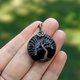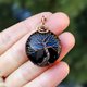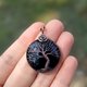 此款生命之树坠饰采用铜线编织工艺,并镶嵌天然黑玛瑙石。坠饰经过氧化及抛光处理。随着时间自然产生的任何氧化现象,皆可轻松使用拭银布抛光去除。
