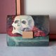 《有头骨的静物》于 2022 年以布面油画创作。现在它变成了一种功利、方便、独特的东西。现在它可以成为永远与主人在一起的东西。你可以随身携带艺术!
