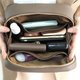 Rectangular bag, rounded shape with a flat bottom. With bag enhanced for a stay in shape. But still soft and not so rigid. 2-way zipper. Make it can be opened as wide as needed.