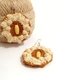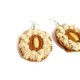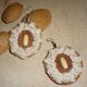 using vintage cotton thread in natural ecru color. Adorned with long wooden beads. The back side is crochet with the same yarn hand dyed in cinnamon color. Finished with silver tone cord end crimps and french hook ear-wires.