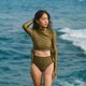 1. 独家SPARKLE 波光缎面同款布料,泳裤比上衣颜色略深一阶,避免浅色膨胀,搭同系列防晒衣或比基尼,跳色层次不单调。