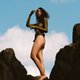 2. 复古高腰泳裤,斜切车线向上收拢,平坦小腹,隐藏腰间肉。