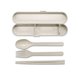 - 汤匙、筷子及叉子 三件式餐具组合 ● 采用天然谷壳纤维,比全塑物料更易降解 ● 加入竹纤维研发,轻巧耐用 ● -20°C至100°C ,耐冷耐温 ● 不含重金属,优质安全 ● 简约流线收纳盒,小巧便携