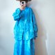- 日本限量设计师设计布料 实际颜色较接近带绿的湖水蓝 100%薄麻 每间的位置都会稍微不同,介意者请勿购买 尺寸 肩宽 (cm)63 胸围 (cm)70 衣长 (cm)80 腋下宽 (cm)26 袖长(cm)57