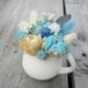 在后方衬上不凋尤加利叶让小盆花色调更显得洁净