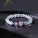 **猫眼石(Chrysoberyl)**寓意可为主人添寿,增进财富,亦有避邪的护身符意义。而猫眼石亦有增强自信心的祈愿意思,希望能为配戴者激发勇气及力量。**马达加斯加粉水晶(马粉/Rose Quartz)**,对应心轮及本我轮(脐轮),是粉水晶之中的“高级贵族”,其品质及能量都会比一般的粉水晶更高。**海蓝宝(Aquamarine)**拥有**强大的疗愈能量**,协助恢复能量到平衡的状态。 被认为是外出的护符。