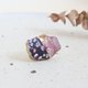 Kyo-yaki porcelain pieces with hand-painted pink flower lover patterns are combined with stained glass in the same gentle pink color, and the center is decorated with natural stones of similar colors, milky kunzite, ruby, and inca rose. It has become brighter and more sophisticated.