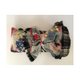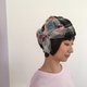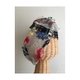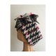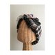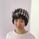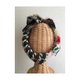 This voluminous ribbon hairband is made from a mix of different types of fabric: flower embroidery, mixed-coloured wool fabric, and atmospheric checkered fabric.