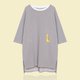 ▲“老花眼的长颈鹿奶奶-细格子奶茶色宽宽长版T”