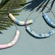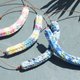 ▲以手工扎染的纯棉布制作,借由钩织这回最纯真的手感,如同彩霞的自然色系,把森林里的清新味道戴在身上,随时保持旅游的初衷