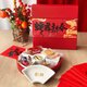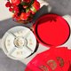 圆形的全盒由四个扇形陶瓷和一个圆形盘组成。每个扇形陶瓷内雕刻着金色的祝福词,分别是[发财]、[高升]、[好运]、[美满],象征着对新一年的美好期盼。您还可以进行文字订制雕刻,让这份礼物更具个性化,展现您对收礼者的用心。