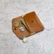可放入零钱及卡片,轻便携带,使用植鞣牛皮手工缝制,经常使用皮料会愈来愈有光泽