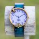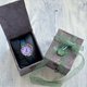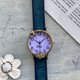 采用独创的木版染色制作出带有木头纹路的蓝绿色表带,更加凸显出淡紫色的美丽鲜艳。