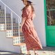 微微喇叭的袖子营造休闲浪漫的LOOK。