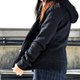 外套正面的弧形口袋,袋口使用上下袋唇设计,更显精致工艺