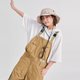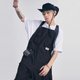 这次推出的机能风背带裤,通过裤腿可拆卸的独特设计,强调了单品的实用性以及多元化。裤身左右两侧的口袋做了打褶处理,配合胸前立裁口袋,更能尽情展现户外风格的实用主义和造型可观性。