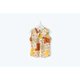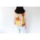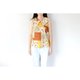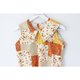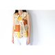 无袖上衣,领口为三角形领,适合春夏穿着 领子设计延伸至后方 棉质布料,采用黄色、橘色、棕色拼接图案 尺寸 (单一尺寸) 肩宽 14 英寸 (含领子共 15 英寸) 胸围 39 英寸 衣长 22 英寸 袖围 7.5 英寸