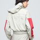 - VOUX拼接logo短版连帽上衣,撞色拼接,背后LOGO印花,落肩宽松袖型,活动方便,下摆缩口修饰身形,门襟绑带设计。