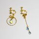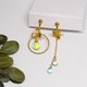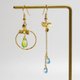 - 以三叶草搭配黄蓝色渐层琉璃珠的长耳环,左右造型不一样, 利用高低对比的不对称效果让妆扮更抢眼。