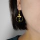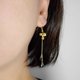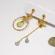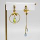 以三叶草搭配黄蓝色渐层琉璃珠的长耳环,左右造型不一样, 利用高低对比的不对称效果让妆扮更抢眼。有耳夹和耳勾两款可选, 无耳洞一样能戴的漂亮。