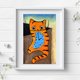 Title "Abstract Cat painting" - 100 % hand painted by artist Liliy Ganzha