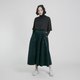 - 修身版型、灯芯绒材质、腰头造型荷叶装饰、裙身合褶设计。