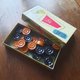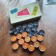 方格直径 37 毫米。 重量(连盒子)350 公克。 非常好的复古状况。漂亮的大型古董跳棋游戏套装。