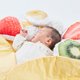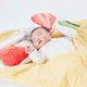 因莫罗反射和其他意外动作的可能性,请将水果抱枕从宝宝的脸部周围移开。