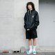 - 口袋抽绳套头连帽罩衫风衣 基础款宽松休闲日系