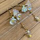 以不同基底色调的透明树脂小花层层堆叠,通透轻盈的特质创造出丰富而有层次的视觉效果,点缀上同色系的方形与圆形小珠,让整体设计更加协调与平衡,散发精致梦幻的氛围。