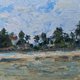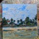 纸板上的海景油画。 厚涂绘画。 尺寸 5.5x6 英寸 用画笔和调色刀从生活中绘画。 调色刀技术赋予了绘画生命力。