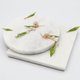 以浸渍法(dip art)制作的一朵淡粉色花朵与两片叶子,叶间点缀着三颗象征肥皂泡的天然水晶,营造出仿佛从叶子中冒出泡泡的意象。