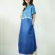 中式领靛蓝扎染白线图案木钮扣连衣裙。短袖宽松连衣裙,两侧都有口袋,可爱的设计,酷炫的靛蓝染色图案。