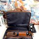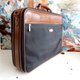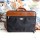**日本中古70年代怀旧式真皮帆布炭黑色电脑旅行轻便手提包箱行李包**