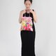 亮丽的粉红色底,西洋大兰花与中国牡丹花分饰大花丛主角,就是这样的东、西方文化交会,让台湾传统花布能够一直走在时代变化的世界潮流当中。
