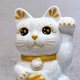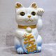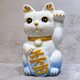 日本清水烧招财猫 花结晶 青白 千万両 左