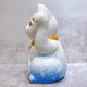 清水烧招财猫以独特的青白色花结晶工艺打造,细腻晶莹的结晶纹理犹如冬日雪花般优雅