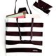 由 100% 再生涤纶制成的信封状可折叠袋子,面料光滑、柔软且用途广泛。 这款轻巧的手提袋配有带垫的肩带和钮扣。 您将舒适地使用这个旅行伴侣! 黑色印有横条图案。产品手工制作,尺寸可能略有不同。