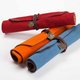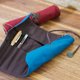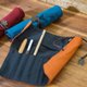材质上以节纱古布的织纹变化呈现出古朴与雅致的风格与帆布剪接制成,让简约的卷式笔袋具有两种布料的样貌与质感,绑带式,束口是以纯手工缠绕的方式系上凤凰花吊饰。