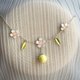 【免运条件见描述】原创手工手绘粉红色樱花朵绿叶子棉珠子-项链颈链毛衣链-可爱时尚个性清新日式法式优雅-伴手生日交换节日情人节礼物